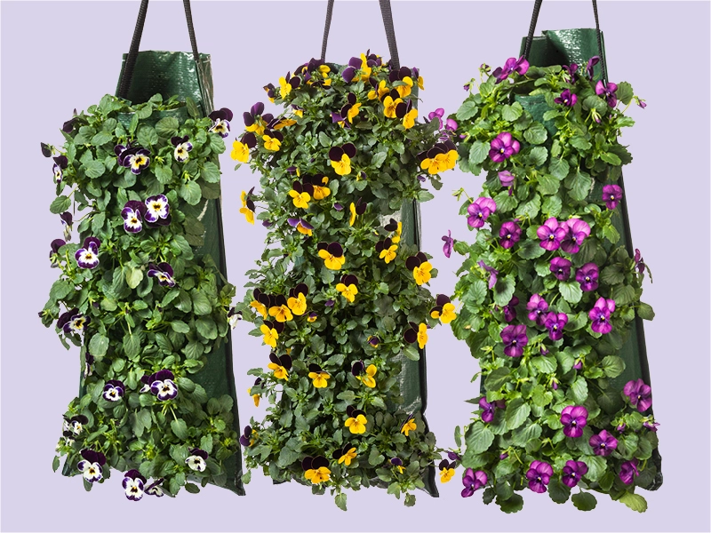 De vrolijke bloemen van violen zorgen voor een speelse uitstraling en hangen als een kleine waterval over de rand van de hanger. Ze bloeien uitbundig en trekken bovendien vlinders e bijtjes aan, wat de boel nóg gezelliger maakt.